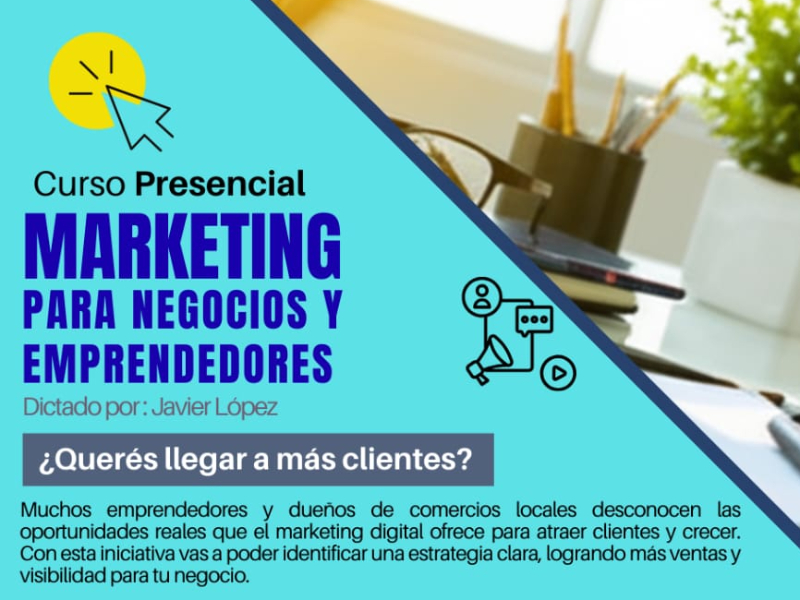 La Dirección de Cultura de la Municipalidad de Berisso invita a la comunidad el viernes 10 de octubre de 9 a 11, a participar de un curso presencial sobre Marketing para Negocios y Emprendedores, que se dictará en la Casa de Culturas (Av. Montevideo e/10 y 11).